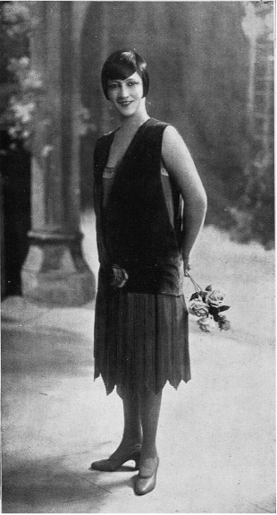 Fig. 2 : Robe d’après-midi par jenny, gilet en velours bleu marine, garni d’une rose en velours de soie, jupe plissée, en crêpe de chine marine (« Les Modes : revue mensuelle illustrée des arts décoratifs appliqués à la femme », février 1926, p. 9.)